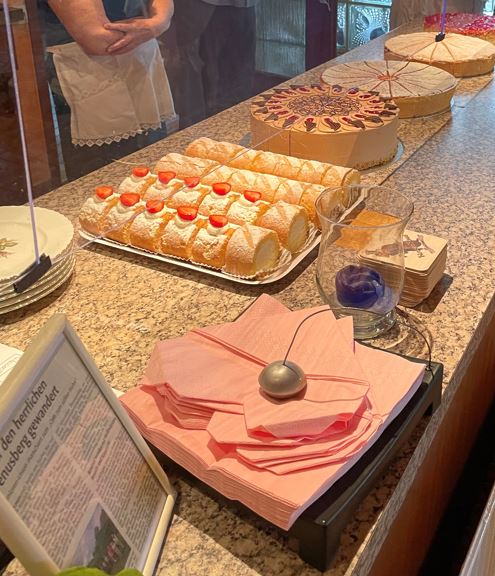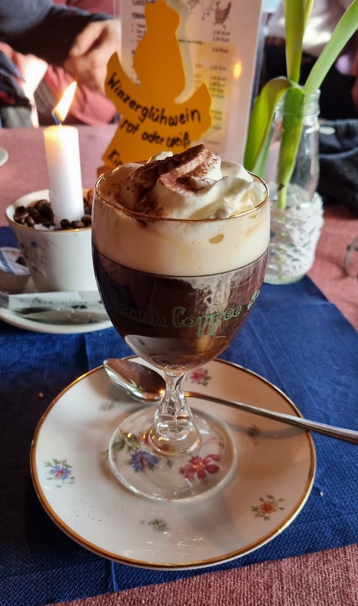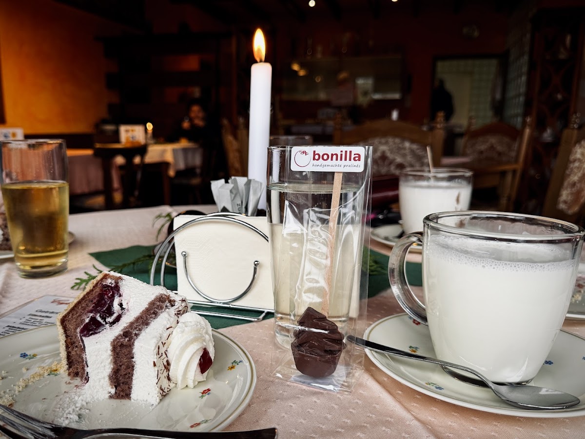 The café’s charm largely comes from its welcoming, home-like atmosphere, where friendly, attentive hosts — many of them seasoned locals — serve up generous portions of lovingly made homemade cakes. The Heidelbeerkuchen (blueberry cake) and Irish Coffee are frequent favorites, and there are also gluten-free options like almond croissants for those with dietary needs. It’s not about speedy turnover here; visitors are encouraged to take their time, soaking in the nostalgic decor and the gentle views of grazing cows and sheep on the terrace.